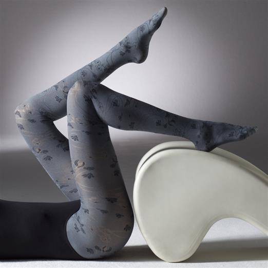 Un patrón de pájaros y ramas en forma de remolino adorna estas medias de color gris jaspeado. El diseño delicado y romántico hace de estas medias una pieza llamativa.