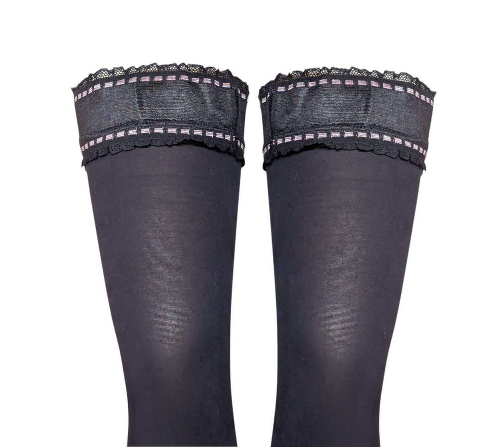 Elegant Italian Black Hold-Ups with Baby Pink Square Design