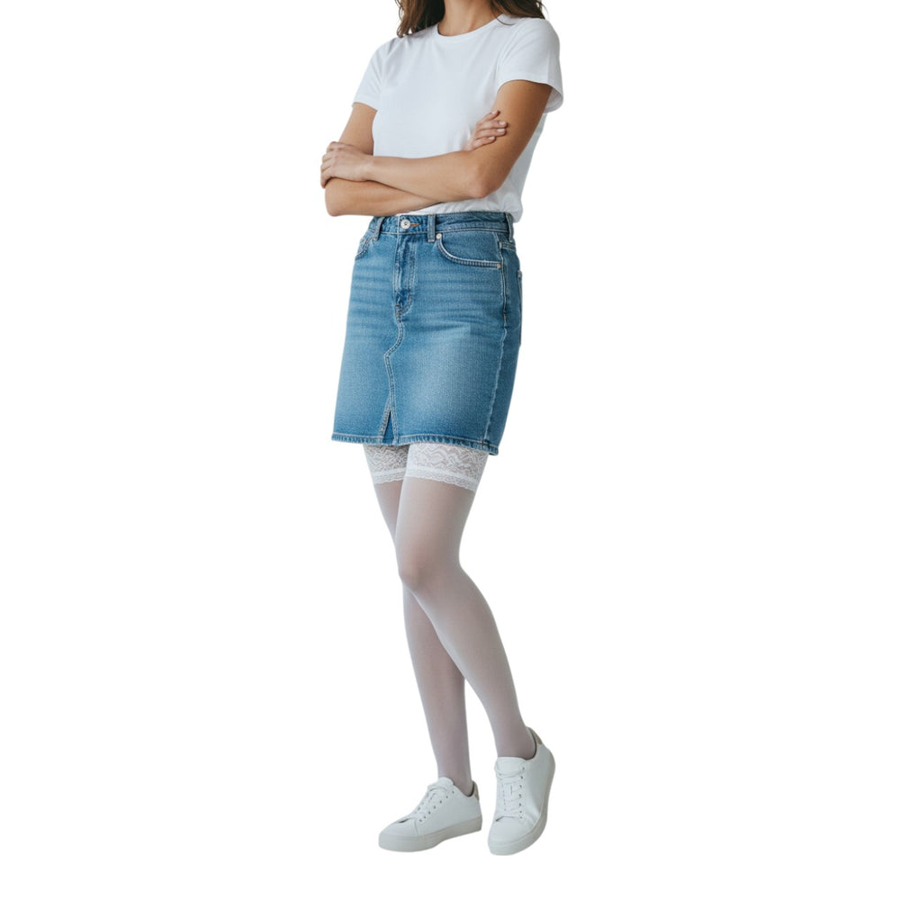 Secure Fit: Deep lace top with a silicone lining (no suspender belt required).